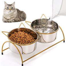 ZOZOFO 식품 전용 스텐 펫 식기 강아지밥그릇 고양이 식기 더블 세트, 1개, 스텐 2구