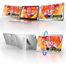 14인치 휴대용 3중 스크린 모니터 1920*1200 해상도 노트북 확장 디스플레이 15-17인치 노트북용 간편한 설치, 35.6cm