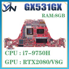 그래픽카드 지포스 컴퓨터 메인보드 GX531GW GX531GV GX531GM GX531GWR GX531GX GX531GS 노트북 마더보드 GTX1060 GTX1070 RTX2060, 5.i7-9750H RTX2080-V8G