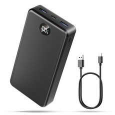 UOOFON 고속충전 대용량 보조배터리 30000mAh PD 22.5W QC3.0 잔량표시 멀티단자 + 20W C타입 케이블, 블랙-30000mAh, P1