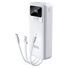 WAPIK 일체형 고속충전 대용량 보조배터리 M1 20000mAh PD 22.5W QC3.0 잔량표시, 화이트