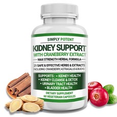 신장 지원 보조제 신장 건강 및 회복을 위한 신장 정화 디톡스 및 복구 포뮬러 705 mg 21가지 성분 함유 방광 및 요로 건강을 위한 크랜베리 황기 및 주니퍼, 1개, 60정